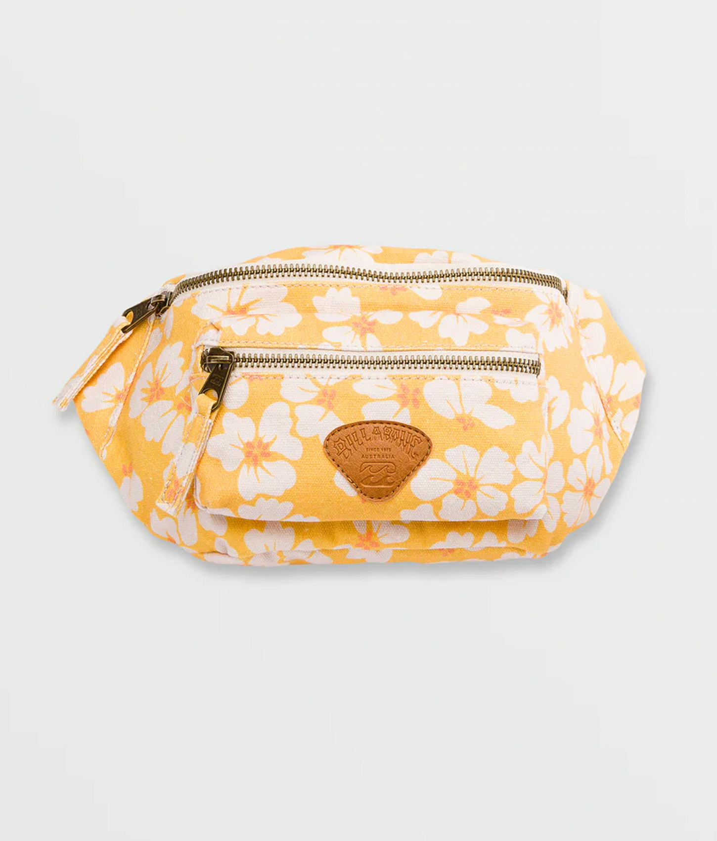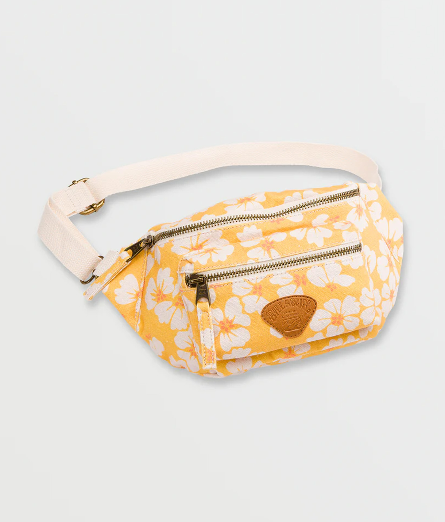 The On My Bum Waistbag from Billabong comes in 100% cotton canvas and keeps essentials secure with two zippered compartments and an adjustable white strap. A hands-free carrying solution perfect for festivals, travel or everyday.