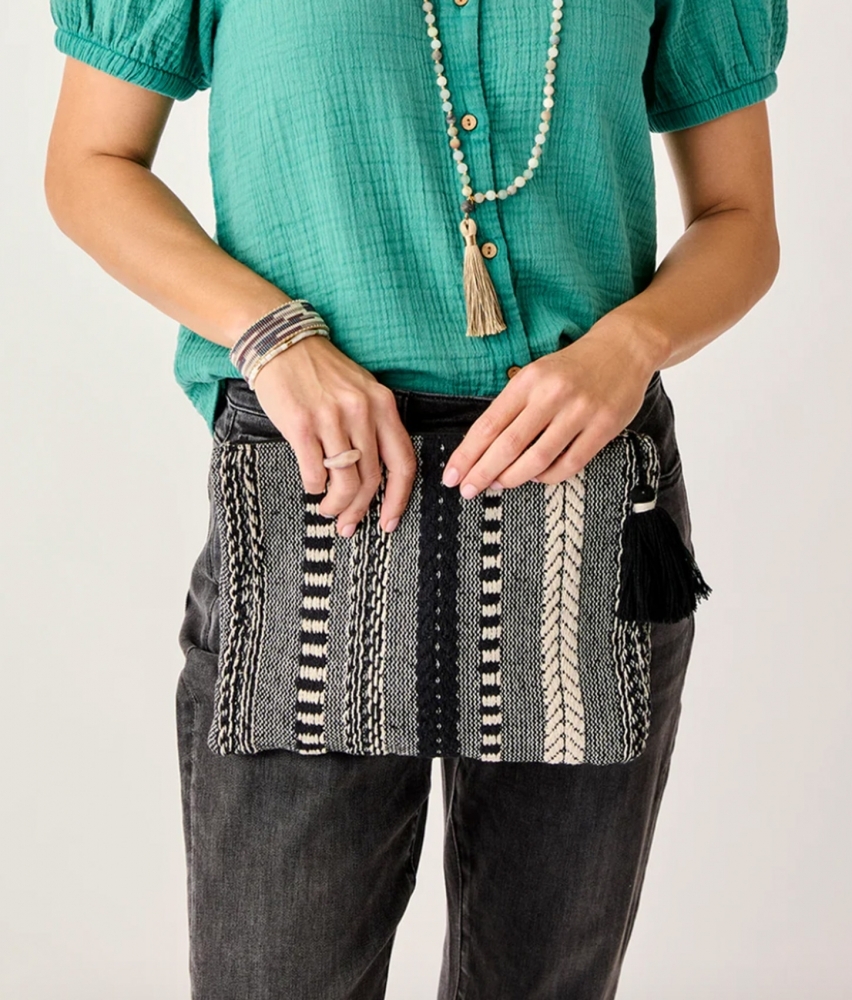The Treasure Clutch by Carve Designs is the perfect hand bag for storing your phone, wallet, and sunnies while out at the beach, or at an event. It features a soft cotton feel and a cute tassel on the zipper.