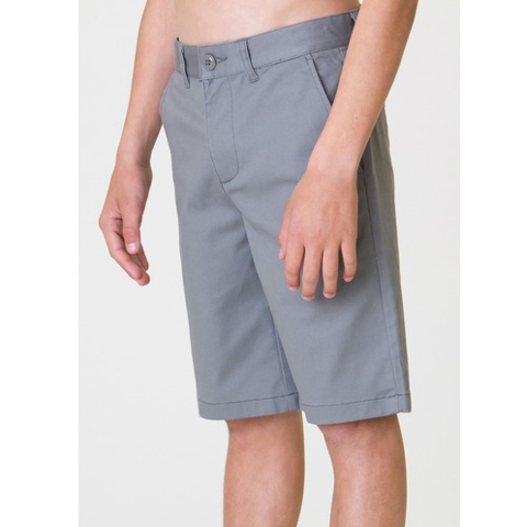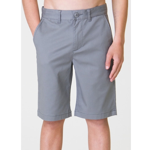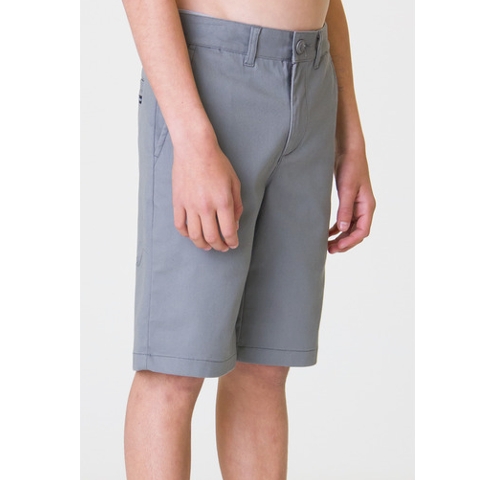 The RVCA Boys Weekday Shorts are stretch slim fit, twill chino slack shorts with zipper fly closure. They feature slash pockets at front and single welt pockets at back with a RVCA solo label.