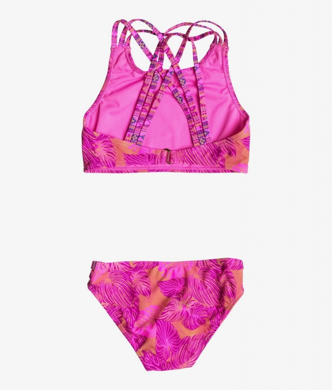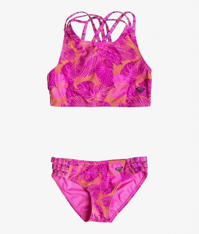 The Big Valencia Beach Tankini Set by Roxy is a high neck swimsuit with thin straps and a triple banded bottom.