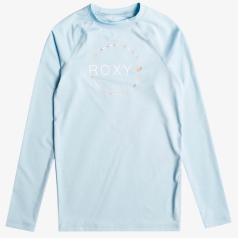 The Girls Beach Classics Long Sleeve UPF 50 Rashguard by Roxy offers raglan sleeves, stretchy Repreve fabric with a fitted pullover design.