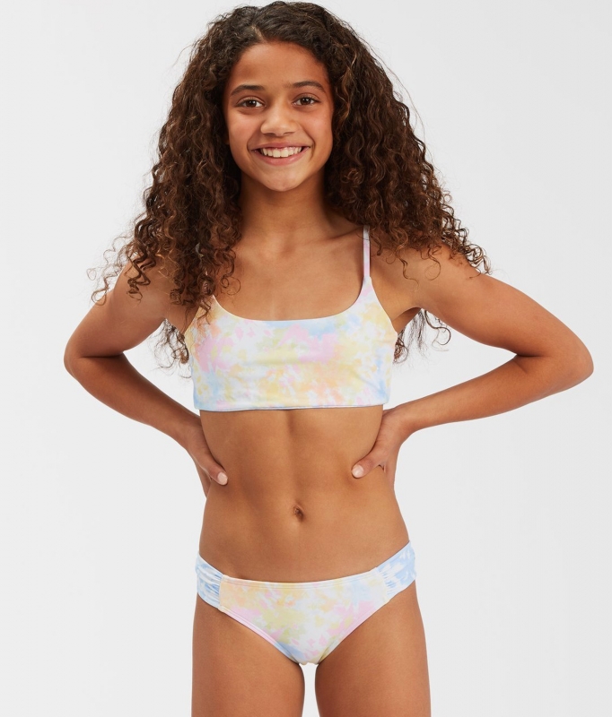 The Girls On A Rainbow Rev Mini Crop Bikini set is a fully reversible swimsuit offering medium bum coverage with tab sides and a pullover top design.