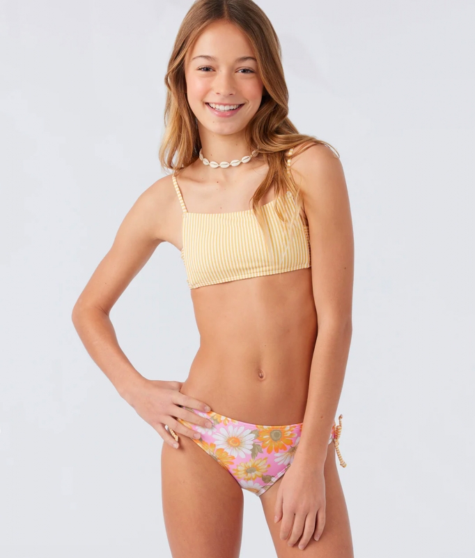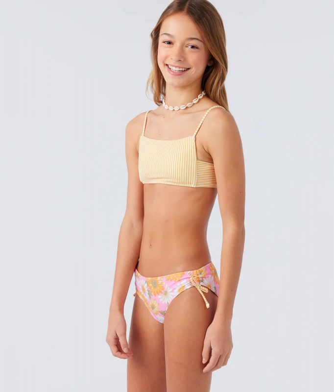 The Girl's Sunnyside Floral Square Neck Swim Set from O'Neill is a two-piece swim set made with recycled materials and features a mix-matched striped/floral combo. Get ready for sunny days on the beach with this sweet set!