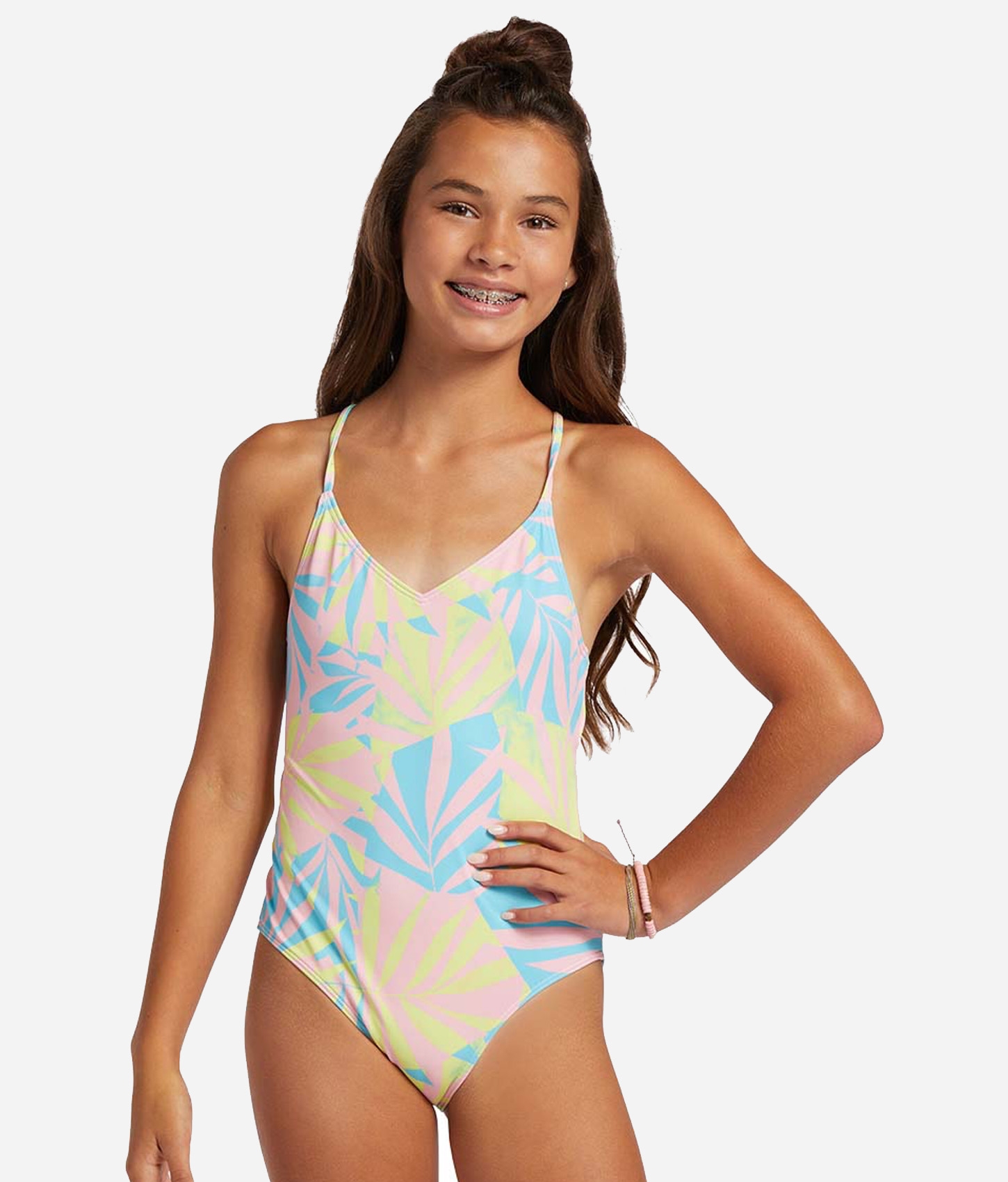 The Girls Surfing Billa Tankini Set by Billabong is an active fit Baja inspired bikini with crisscross back straps for sporty functionality in and out of the surf.