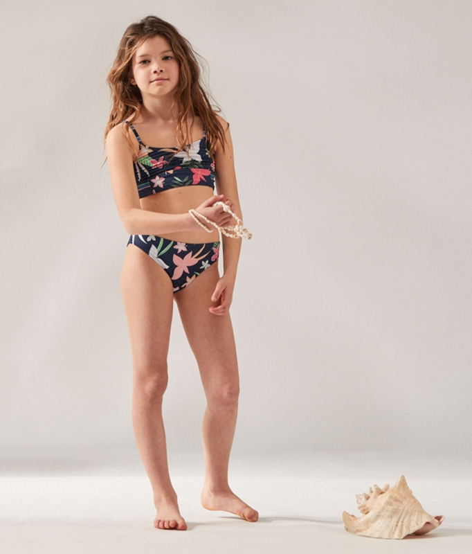The Girl's 7-16 Vacay For Life Crop Two Piece Bikini Set is the most adorable tankini set. Not only is it cute, but it's also made from stretchy, chlorine-resistant recycled fabric, so your girl is staying eco-friendly on long days in the pool.