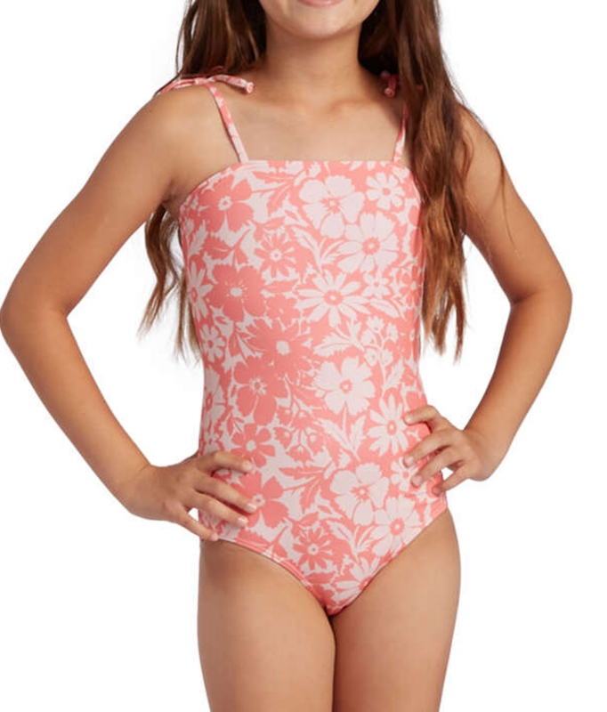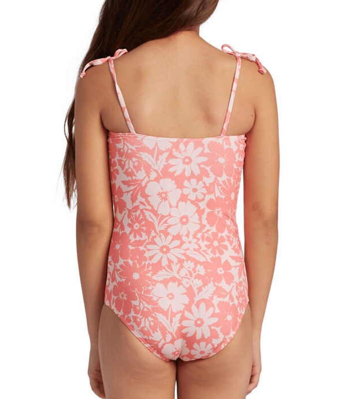 The Girl's Way To Love One Piece Swimsuit by Billabong offers a feminine look and feel with all over floral print constructed with recycled swim fabric and featuring medium coverage with a straight neckline and straps that tie at the shoulders.