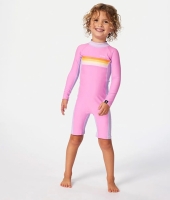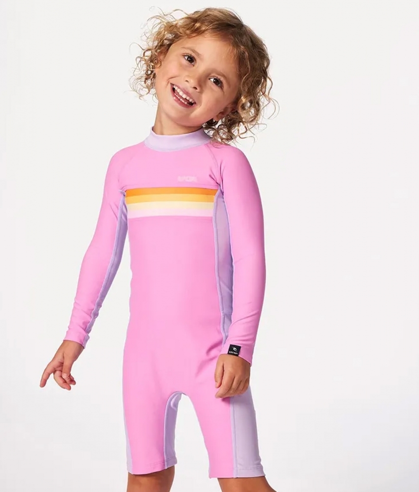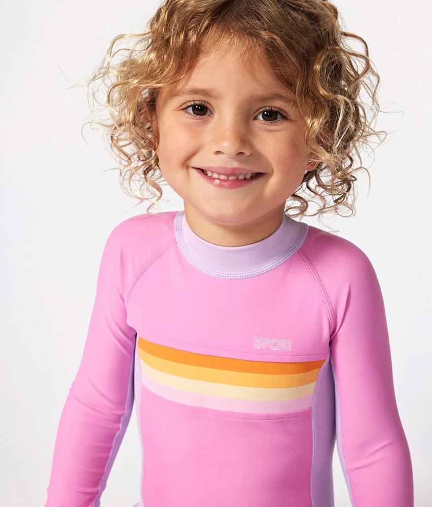 The Girl's Rainbow Tide Springsuit by Rip Curl offers full sun protection with UPF 50+ and a stylish cut-and-sew panel design. Featuring a back zip and inner neck print, it’s a fun and functional option for little surfers and swimmers.