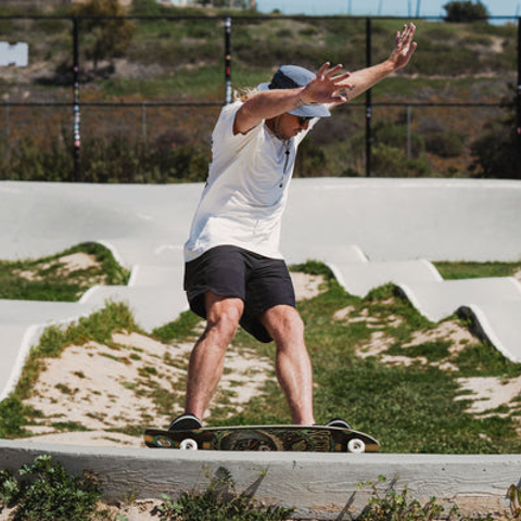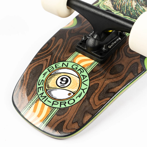 Ben Gravy may have mopped up all the novelty waves on this planet but as this board clearly shows Ben has his sights set on galaxy's far far away and the forecast is pumping! Ride along with Ben on the very user friendly Strand shape. A single kick with mellow concave, smooth turning 8.375" Gullwing Mission trucks and 61MM / 78a Nineball Wheels. This board is super easy to ride but capable of tackling a large variety of terrain. Artist Owen Murphy was able to decipher Ben's description of his space odyssey dreams and turn them into a cosmic graphic of epic proportions. Get your ticket to the final frontier!