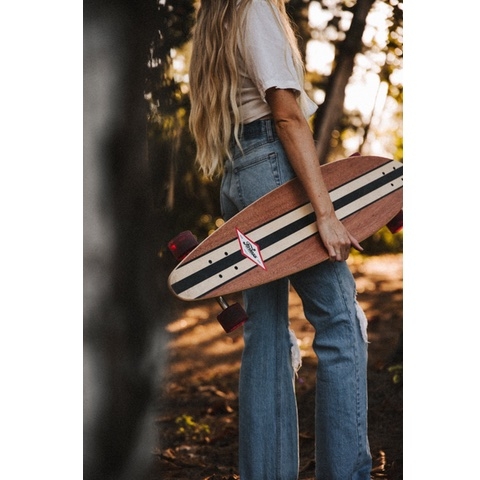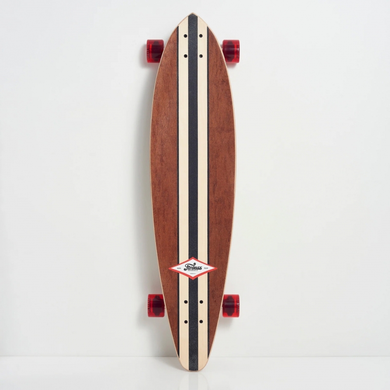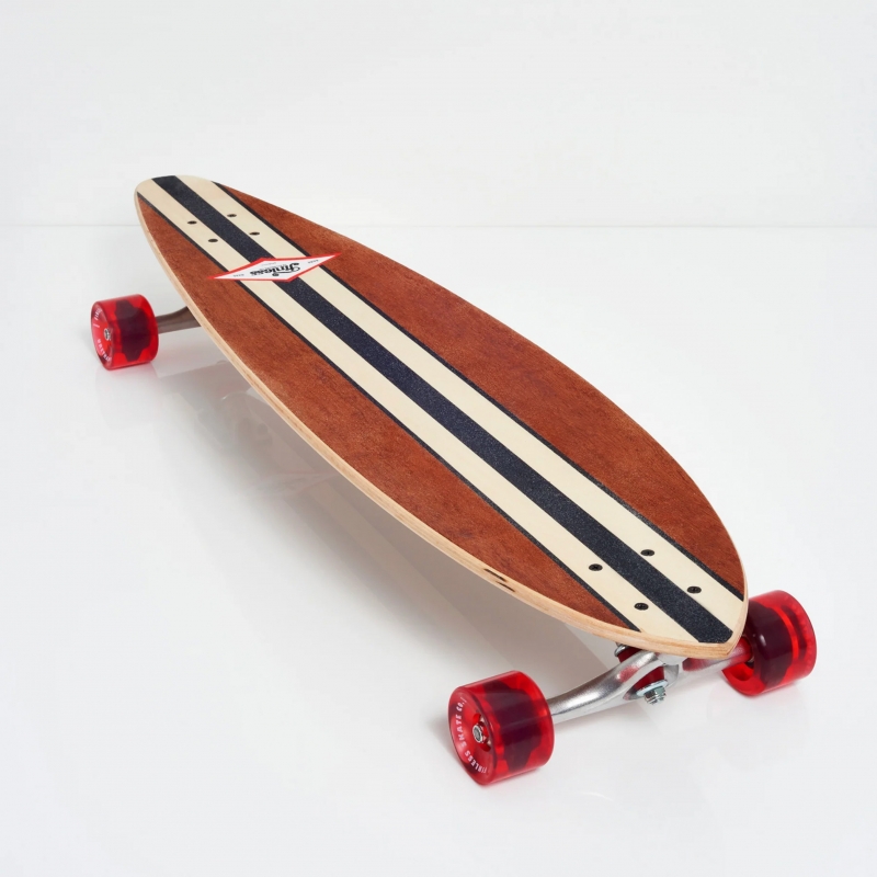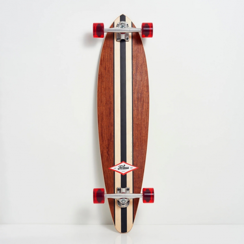 The Duke Longboard Complete Skateboard by Finless is a handmade board with a reverse truck design for sharper turns and pumping. The Duke is cruisey yet agile and offers recycled crushed glass grip that you can shred barefoot.