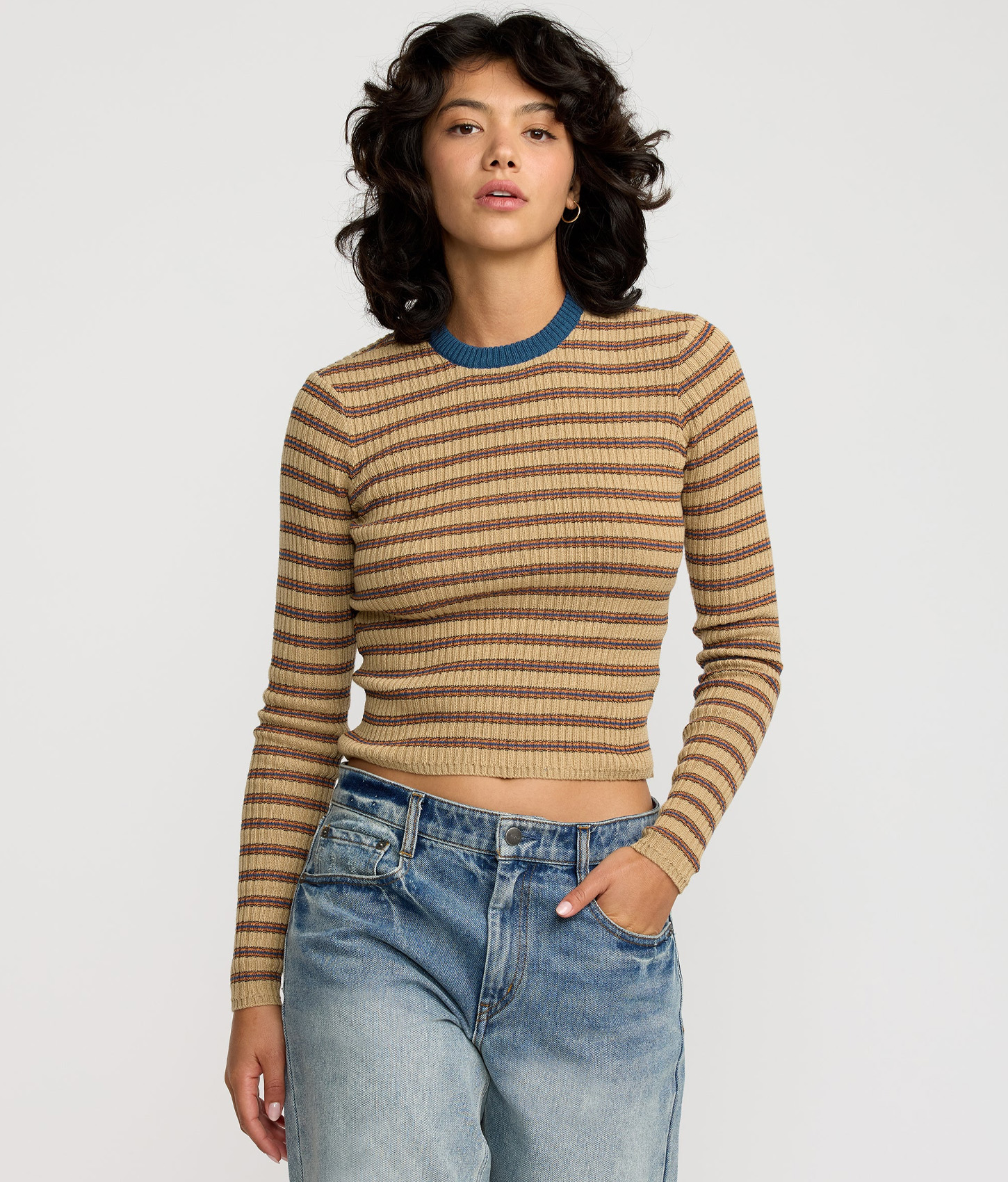 The Bond Stripe Long Sleeve Sweater from RVCA is form fitting striped knit top that's just as stylish as it is comfortable. Pair it with some loose fit denim for a relaxed, casual look.