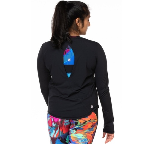 The Brisa Top by Mana Threads was designed for movement and offers a playful peek-a-boo back, excellent moisture wicking and speed dry ability with Momentum fabric for the perfect fit and feel and designed for the active lifestyle.