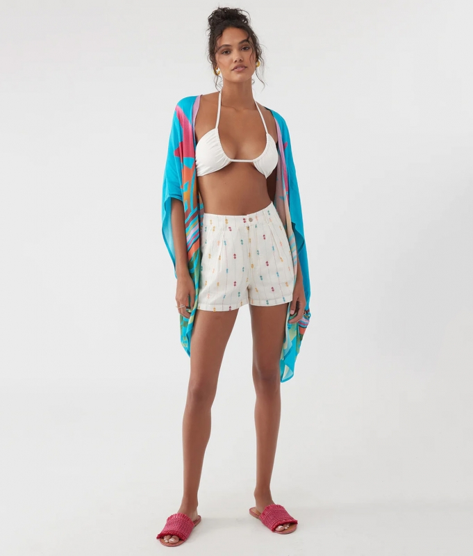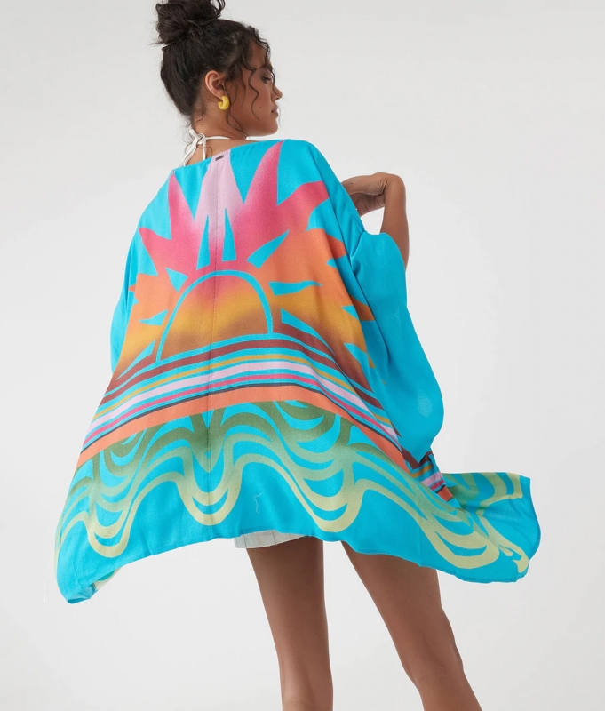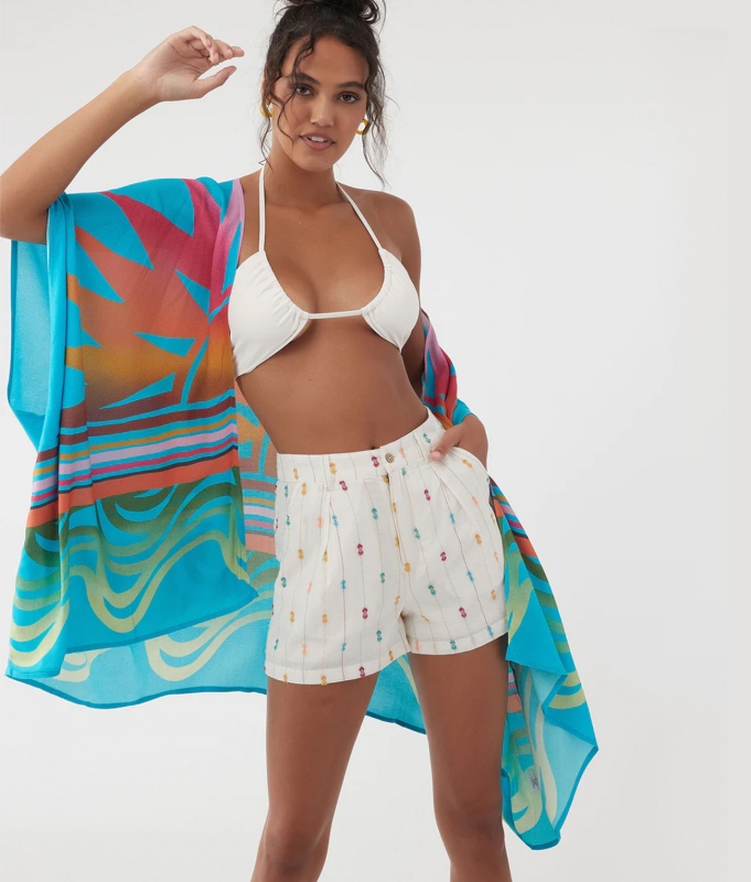 The Carmelita Kimono from O'Neill is a versatile piece that you can throw over some jeans and a white tank, or wear as a swim cover up. It's flowy and features bright, cheerful colors.