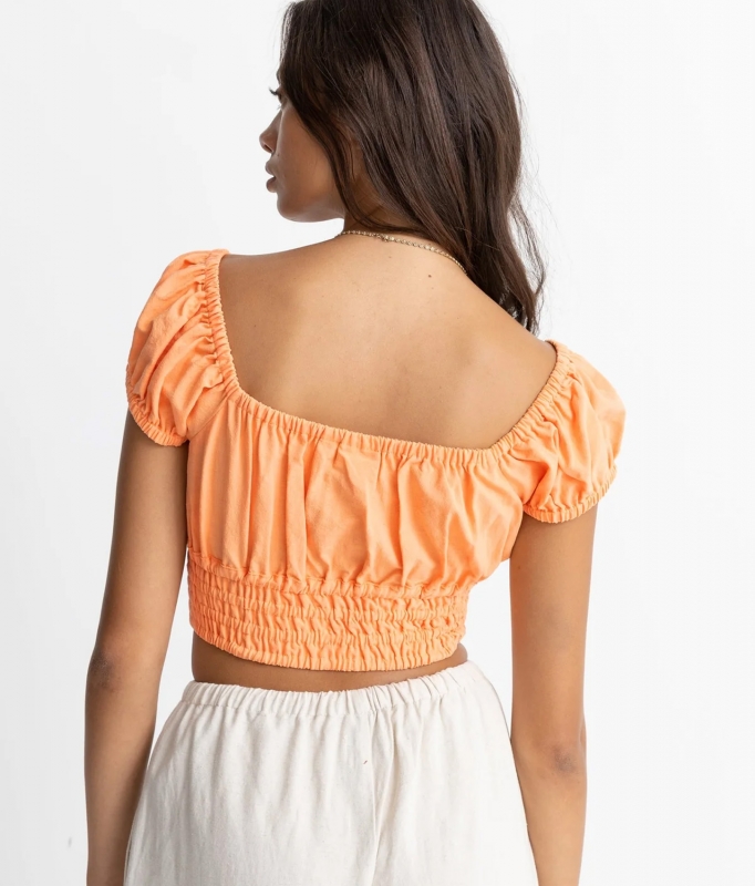 The Dylan Cap Sleeve Top from Rhythm features an easygoing cropped fit with a fitted waist and the most adorable cap sleeves.