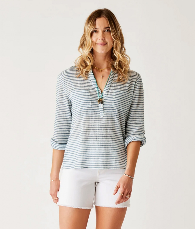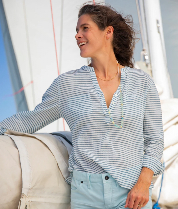 The Dylan Gauze Shirt from Carve Designs will take you from the beach to the boardroom. Not only is it versatile, but it's also eco-friendly, made with 100% Organic, non-GMO, pesticide-free cotton.