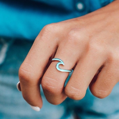 The Enamel Wave Ring by Pura Vida offers a new design with a brass base and rhodium plating.