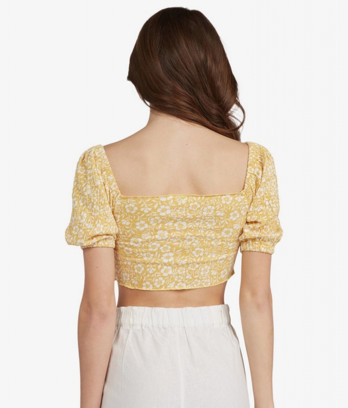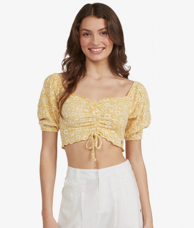 The Flirty Walk Cropped Puff Sleeve Top by Roxy was crafted from cotton blend fabric with a bit of stretch for endless comfort and offers a v-neckline, short puff sleeves and a ruched front for a flattering fit.