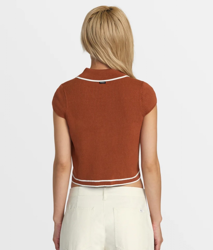 The Jules Sweater Top by RVCA is crafted from a soft viscose nylon blend. This cropped polo shirt features a collar neck for a timeless look that works perfectly with just about any bottom of your choice.