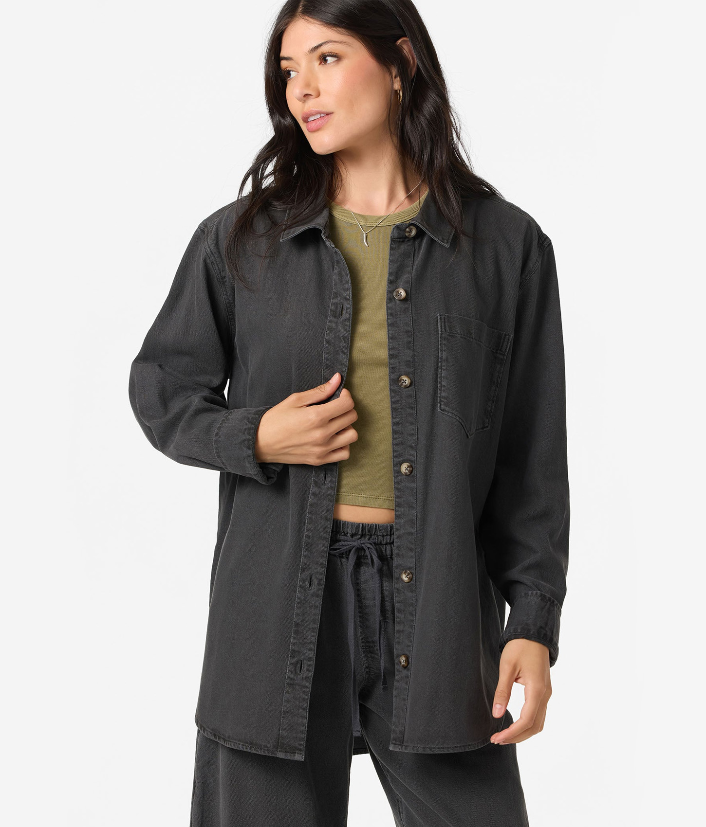 The Quincy Top by O'Neill is a flowy stop with front button closure, sadly hem details and a solid color wash.
