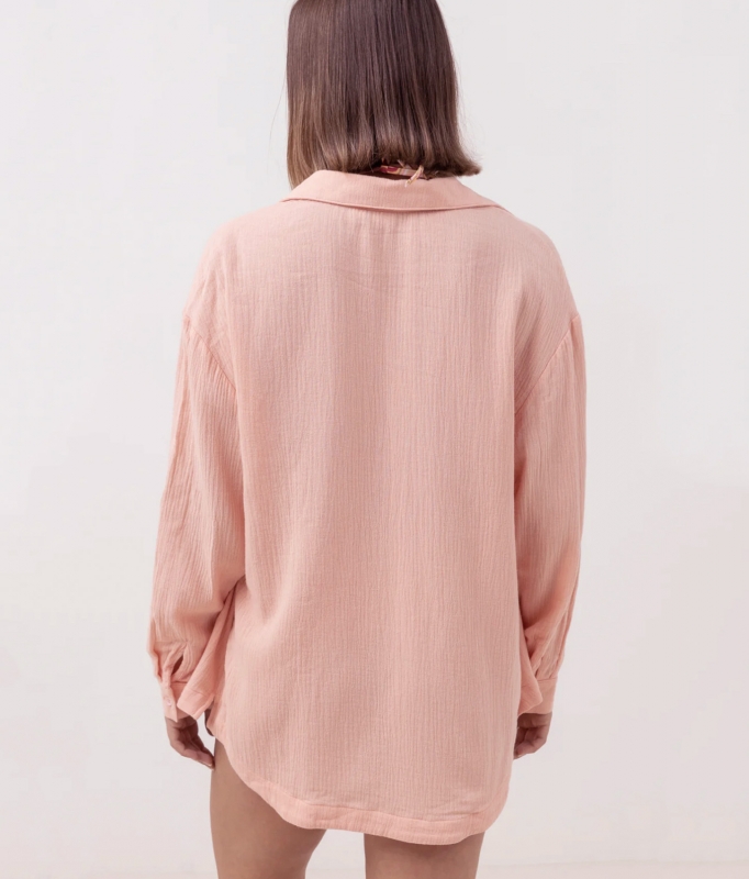 The Ray Oversized Shirt from Rhythm is a perfect top to throw on over your swimsuit, favorite tee, or on its own as a flattering pink blouse.