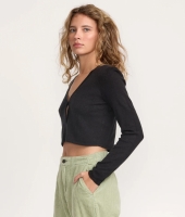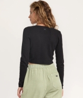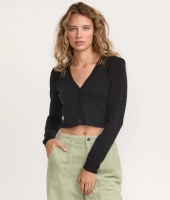 The School Dance Cardigan by RVCA is a soft, drapey knit crop top with a button-front closure, lending a feminine flair to the relaxed regular fit for versatile everyday layering.