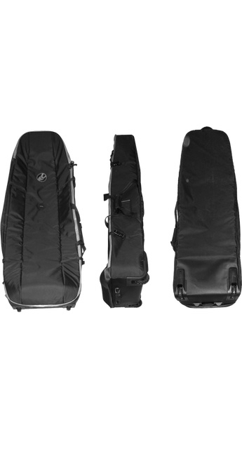 Airline friendly kiteboard bag resembles the shape of a golf travel bag