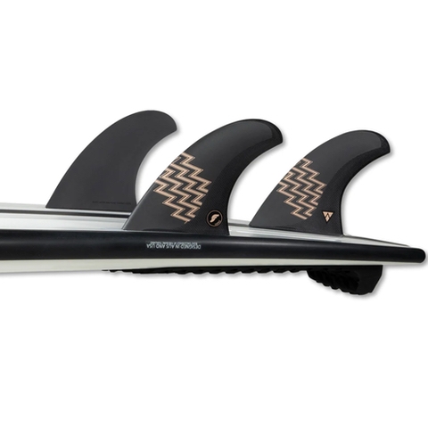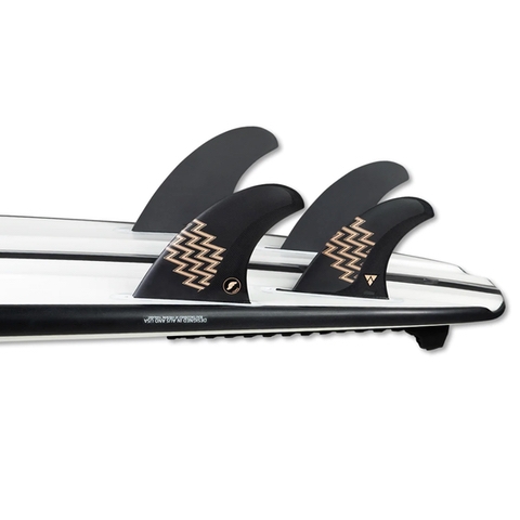 The Gerry Lopez Alpha 5-fin by Futures was designed in collaboration with legendary surfer/shaper Gerry Lopez (aka Mr. Pipeline) and is a large sized fin in the Pivot template category. Made in Huntington Beach, the Alpha product line combines Bureo’s NetPlus recycled fishing nets with Futures’ Compound 6 (C6) carbon and air infused technology. The 5-fin set is designed to be ridden as either a Thruster or Quad set-up, packaged together for more versatility through your quiver.