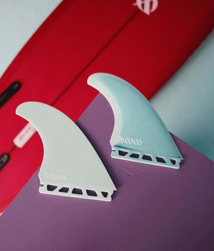Future Fins collaborated with North Shore professional surfer Coco Ho on these twin +1 fins for Coco’s surfboard label XO COCO. XO COCO is a surfboard company designing equipment specifically for and with women. The new Coco twin + 1 fins are designed with smaller surface area for women and smaller surfers. Built in solid fiberglass construction.