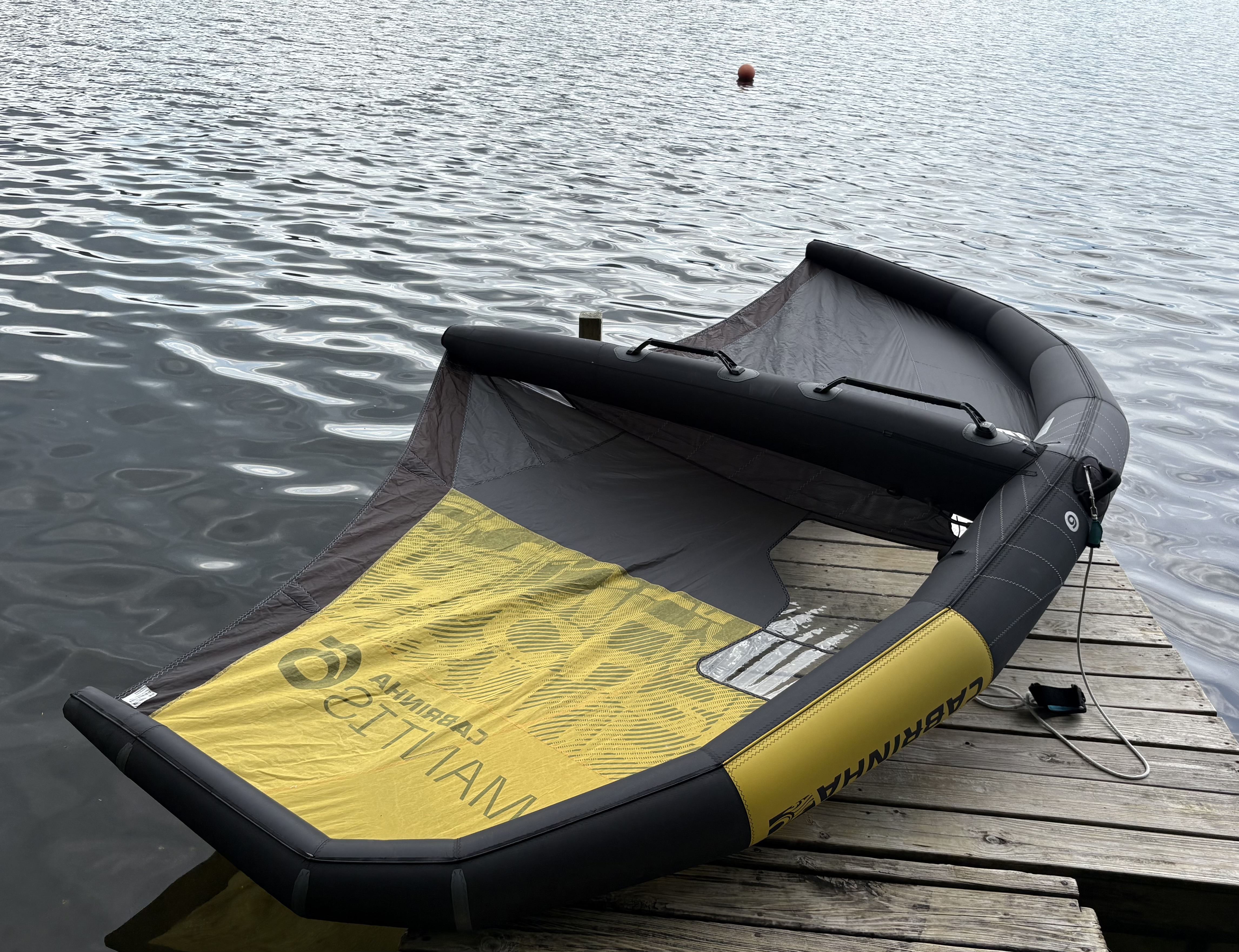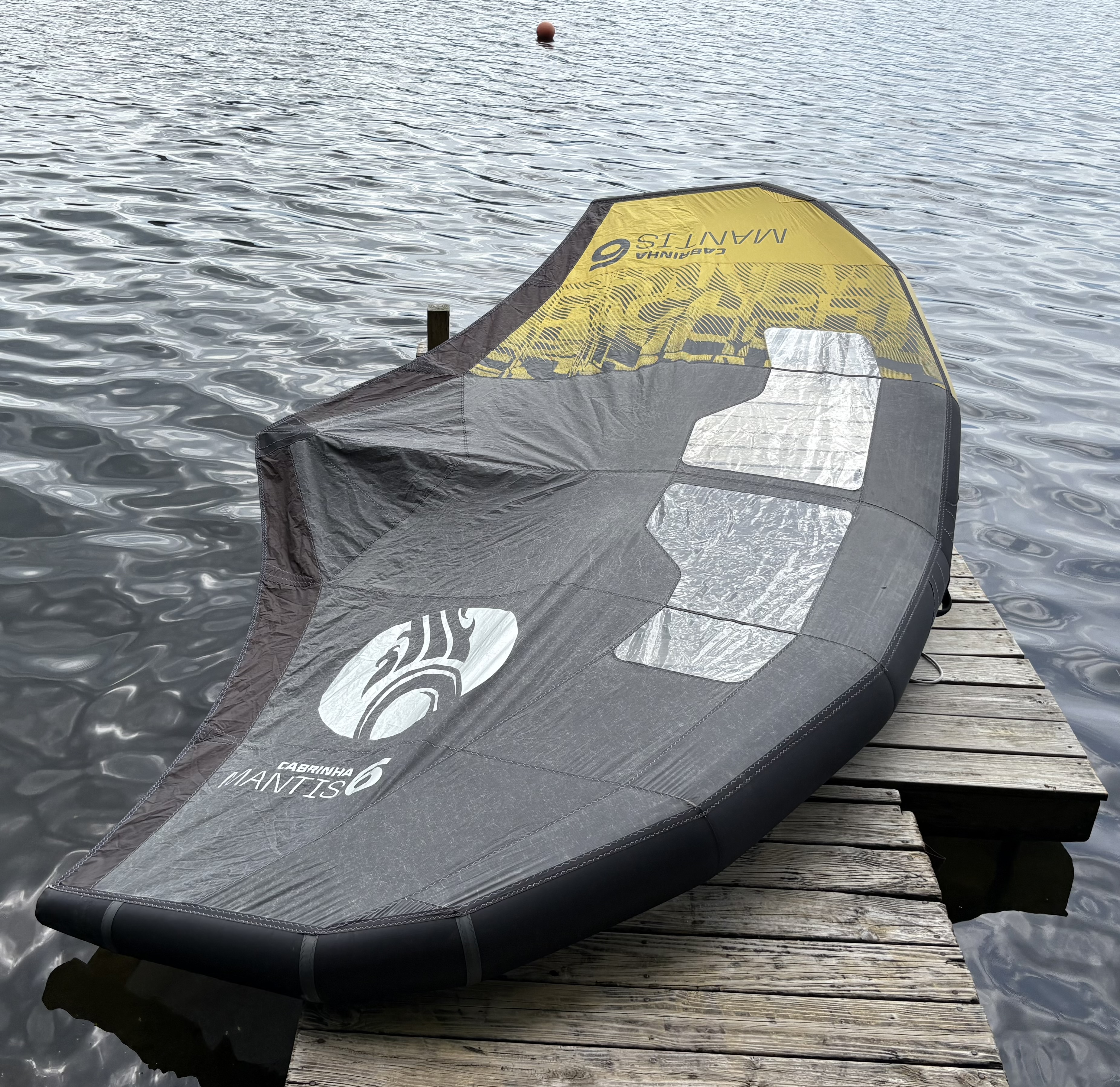 The Cabrinha Mantis 6M Wing is a reliable, high-performance wing. The 6M is the right size for the lighter summer winds here in Vermont. This is a 2023 wing that has been used for two seasons. It has plenty of life in it.