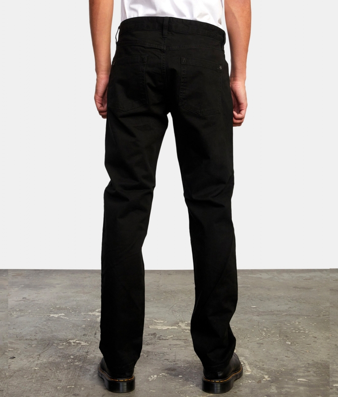 The Daggers Slim Fit Twill Pant by RVCA offers 5 pocket stying with shank button closure and RVCA rivets at front and back.