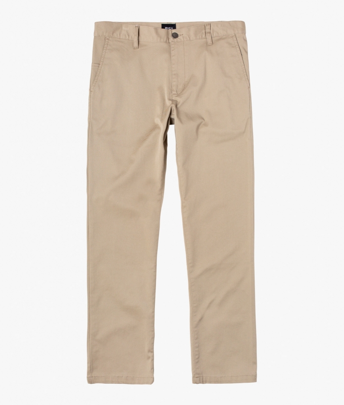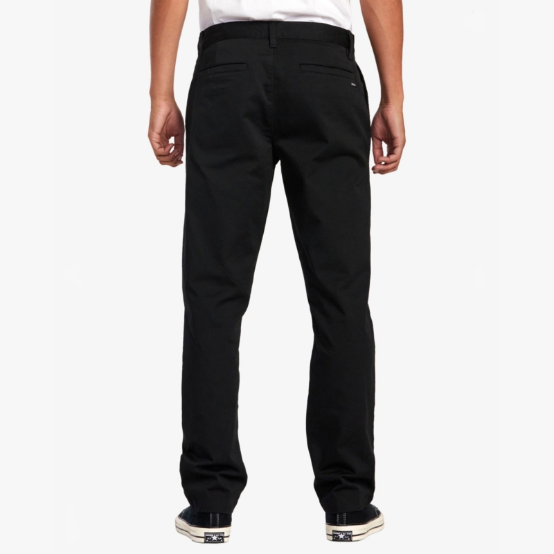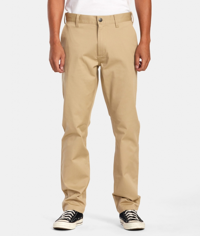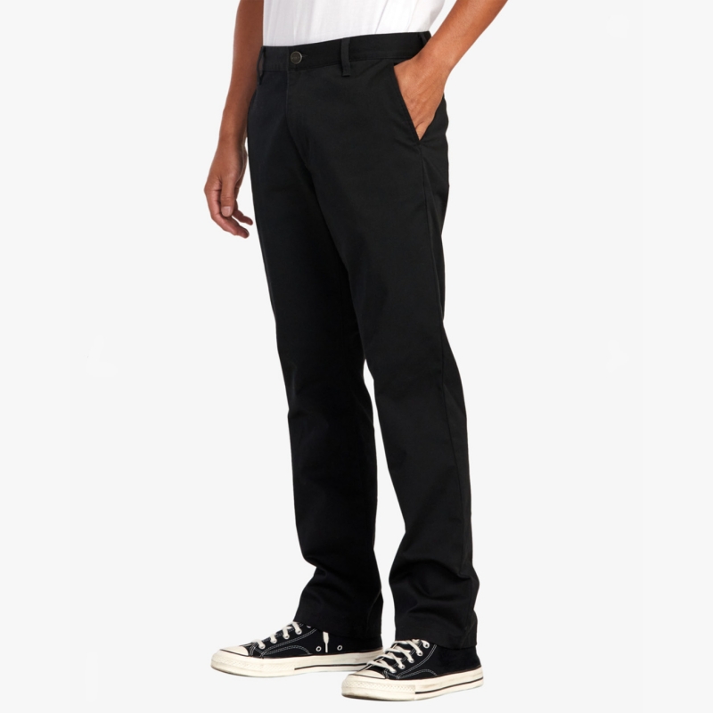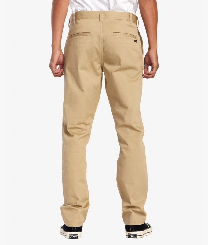 The Weekend Stretch Chino Pants from RVCA are your classic straight leg pants, equipped with a RVCA shank button, zip fly closure, and pockets throughout. Nice enough for formalwear, but casual enough for streetwear.