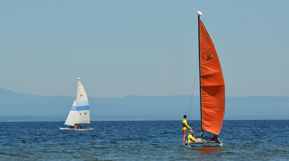 We have 3 Honor 16 Hobie Cats available for rent for sailors with solid catamaran sailing experience. Hobie Cats are small catamarans made by the company Hobie. These vessels are perfect for light-medium wind days and an epic sunset date night opportunity. Rent by the hour or the 1/2 day from our Burlington Surf Club location. Previous Hobie sailing experience is required, including the ability to right the boat should it capsize. Our Hobie Cats have a maximum of 3 average sized adults. Interested in learning how to sail a Hobie Cat? We offer lessons too. Learn more about our Intro to Hobie Lessons offered M-F from 2:00-8:00 and Saturdays 10-8. If you'd rather just sit back, relax and enjoy the ride, we can take you and a friend on a Hobie Cat Sailing Tour. Please call the BSC to book all lessons, tours and Hobie Cat Rentals, or just stop by. Our experienced staff is happy to help. Hobie Cat rentals, lessons and tours are weather dependent and booked accordingly.
