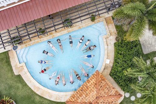 Daily programming includes somatic movement, yoga, meditation, surfing, snorkeling, waterfall, Rincon exploration, breath work, fireside intention setting, nourishing local chef made meals, grounding nature walks, saltwater pool with plenty of free time for relaxation and individual experiences.