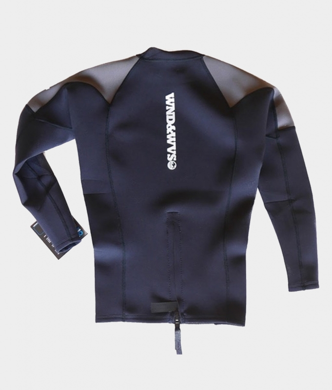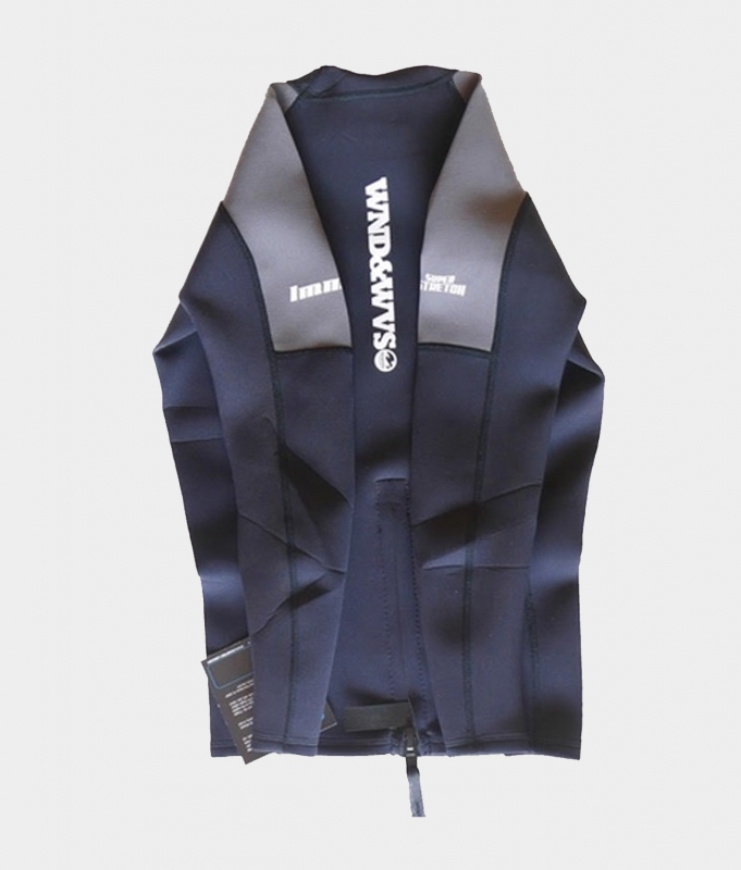 The WND&WVS Team Jacket is a 1.5mm neoprene top featuring a back zip, thermal front panel, flat lock stiching and raglan seams with our classic WND&WVS logo at the front left chest and center back.