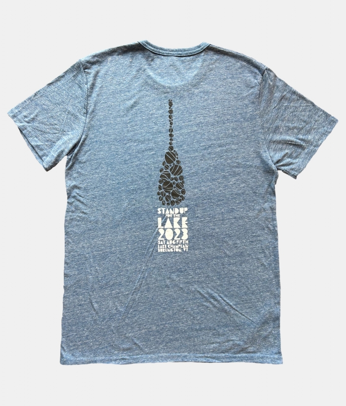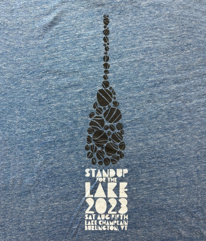 THE 2023 Stand Up For The Lake tee was designed in house by our graphic designer, Jeff Henderson and screen printed by our sister company, Sandbox VT.