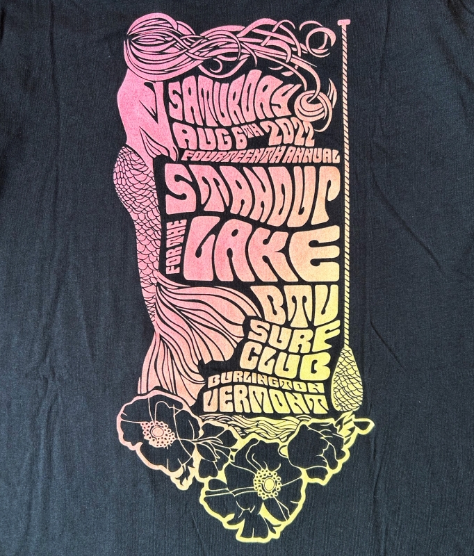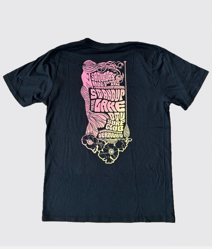 The 2022 Stand Up For The Lake tee one of our favorite designs from past years. It was designed in-house by our graphic designer Jeff Henderson and features a mermaid and hibiscus design.