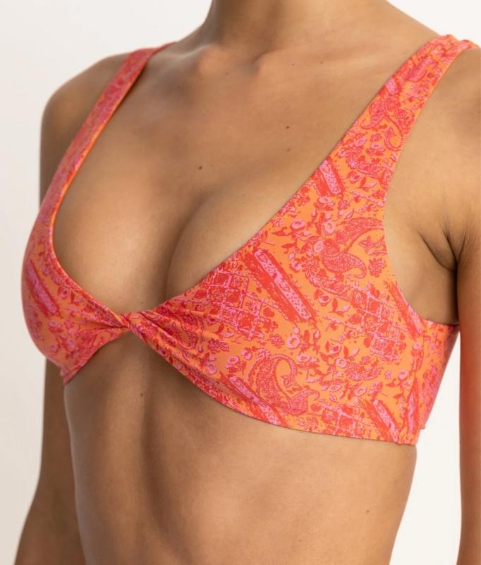 The Adia Paisley Reversible Twist Front Top from Rhythm is a super cute scoop necked bikini top made from recycled materials and featuring a flattering twisted detail.