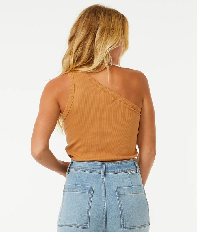 The Asymmetrical Ribbed Tank from Rip Curl is a fun version of your classic ribbed cotton tank top, featuring a one shoulder asymmetrical design.