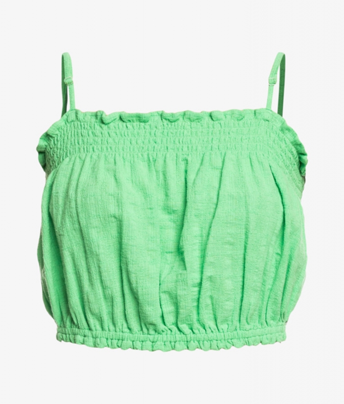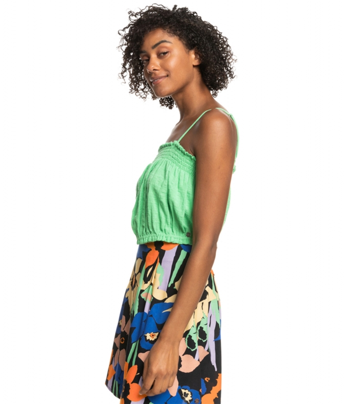 The Bikini Vibes Strappy Crop Top from Roxy is a cute top to throw on with a high waisted skirt or shorts. Whether you wear it at the snack bar, or out to dinner, its green color offers a pop to your look and to your step.