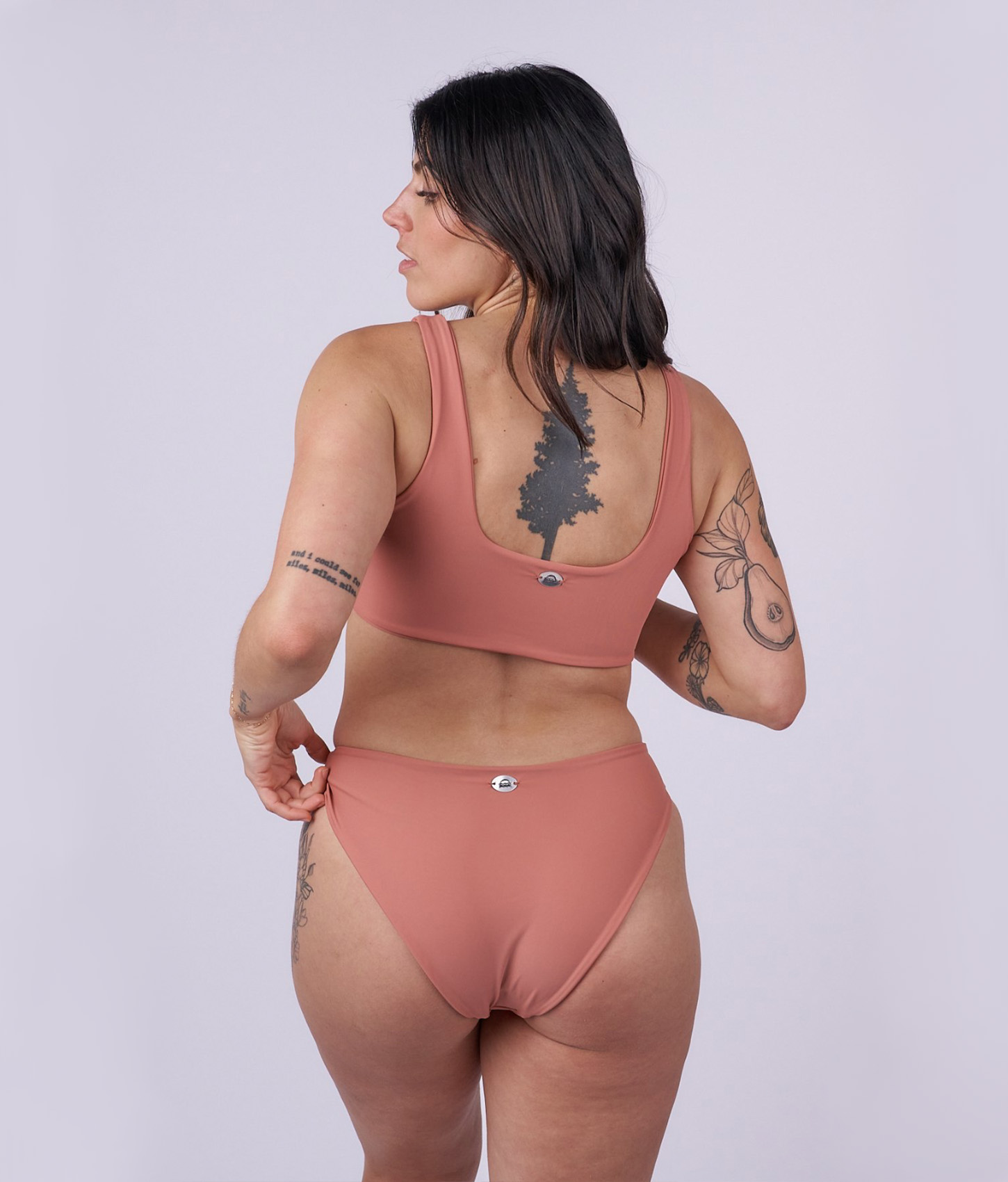 The Cleo Square Neck Bikini Top from Saturday Swimwear is sporty yet modern. The seamless, double-lined construction is sculpting, smoothing, and supportive. It fits up to a DD cup size.