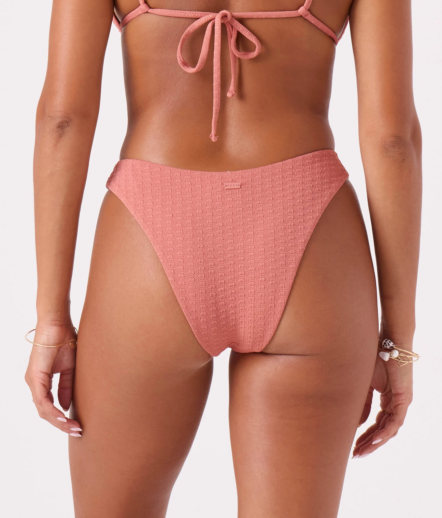 The Haleiwa Scoop Cheeky Bikini Bottom from Roxy has a high leg and less coverage. It's made from a soft, textured fabric that stays put whether you're catching waves or lounging in the sand.