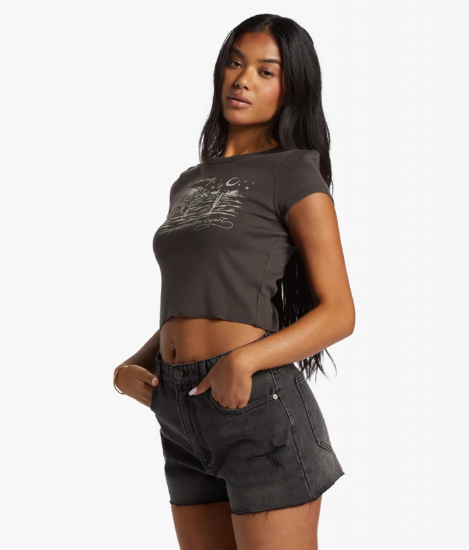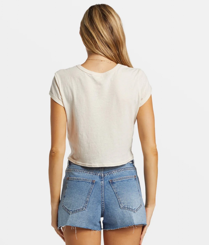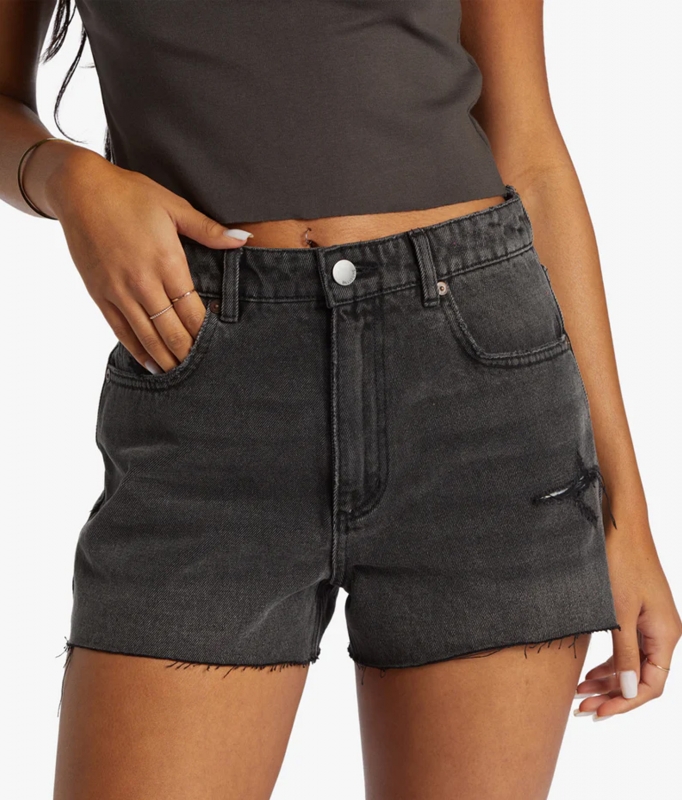 The High Tides Short Denim Shorts from Billabong are high waisted jean shorts featuring a distressed look and pockets throughout.