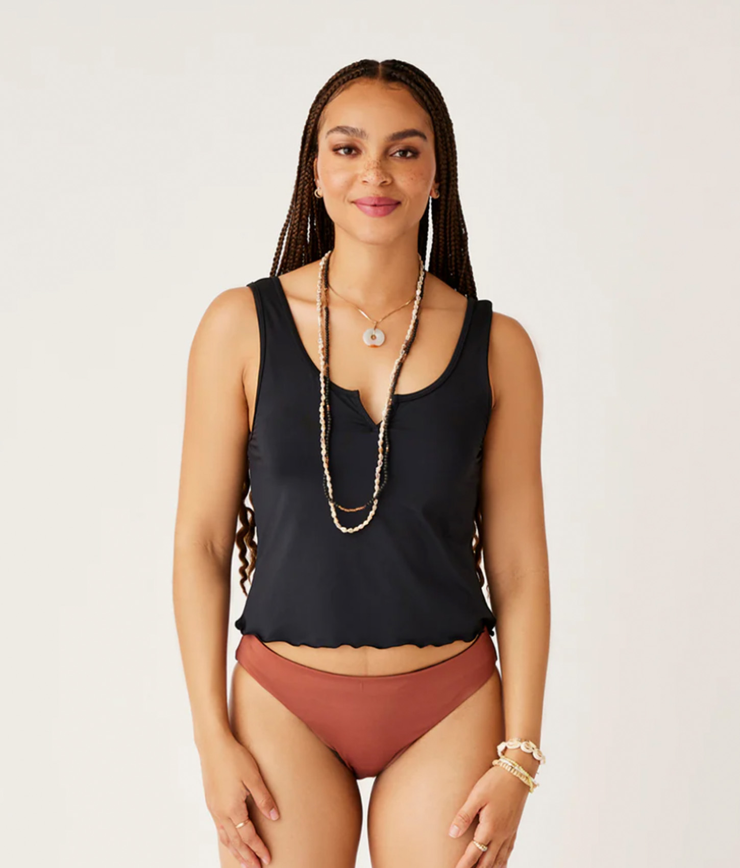 The Ivy Tie Back One Piece from Saturday Swimwear features a subtle scoop neck with adjustable shoulder straps and a tie back for ultimate adjustability. Moderate bum coverage and a mid-high hip cut to show the perfect amount of skin.