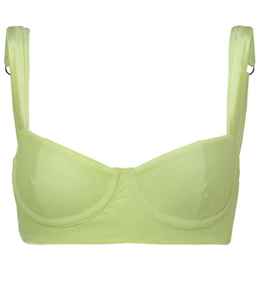 The Lemonade Green Serendipity Underwire Bikini Top from Maaji is a retro-inspired, adjustable top. Perfect for anyone who needs an extra dash of support.