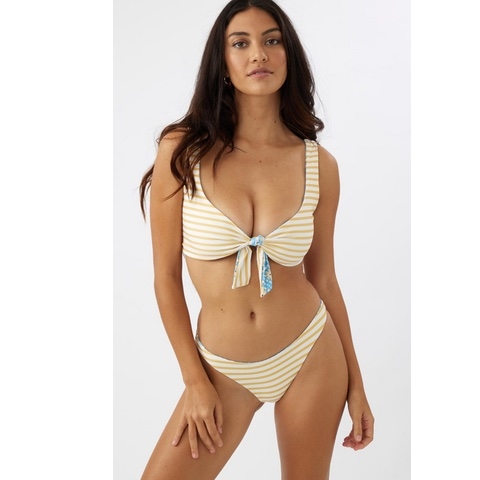 The Melissa Tile Mavericks Revo Bralette Top by O'Neill was built with sustainability in mind and offers a front knot tie design that fully reverses giving the wearer two suits in one.