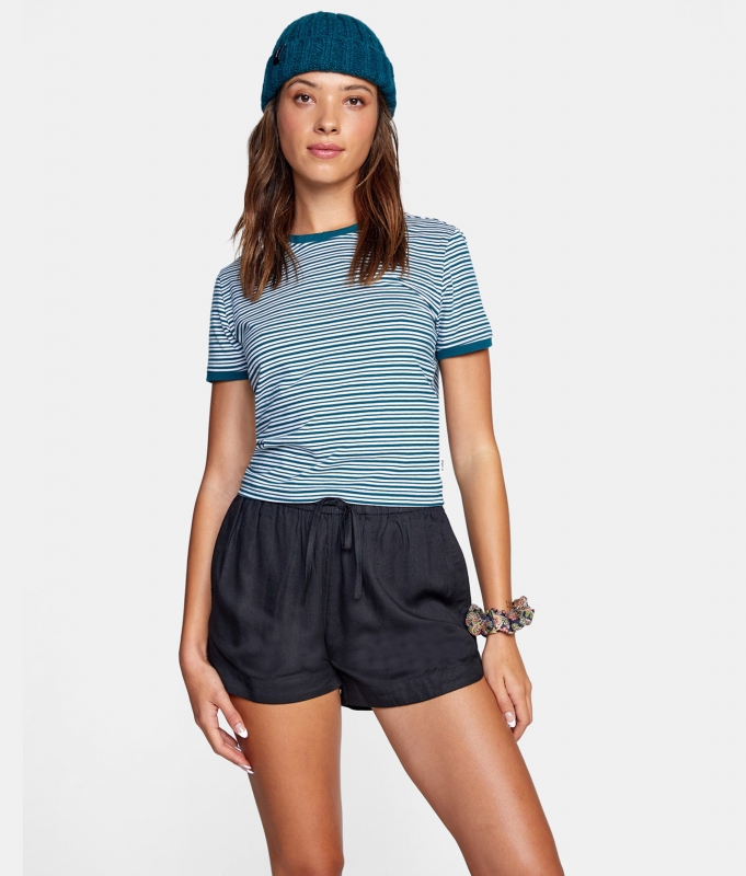 The New Yume Elastic Short by RVCA offers vintage vibes of a classic retro running short with a modern twist like lightweight materials a scalloped hem, elastic drawcord and hidden seam pockets.