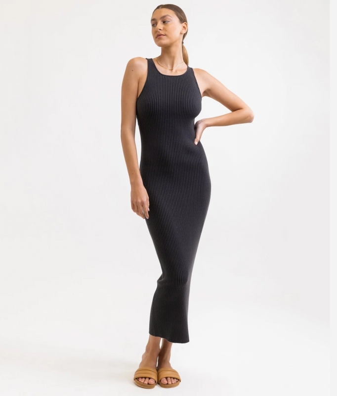 The Olina Knit Midi Dress by Rhythm offers a seamless slim knit fit made to take you from beach to a night out on the town.