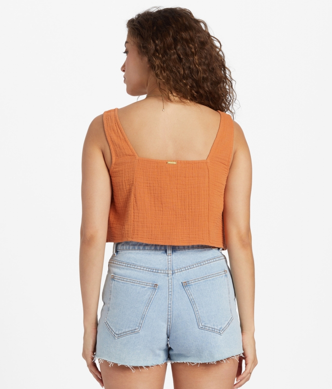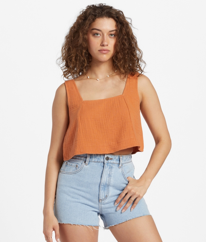 The Open Skies Top Woven Shirt from Billabong is a super cute double gauze cropped tank top that will go perfectly with your favorite pair of jean shorts.