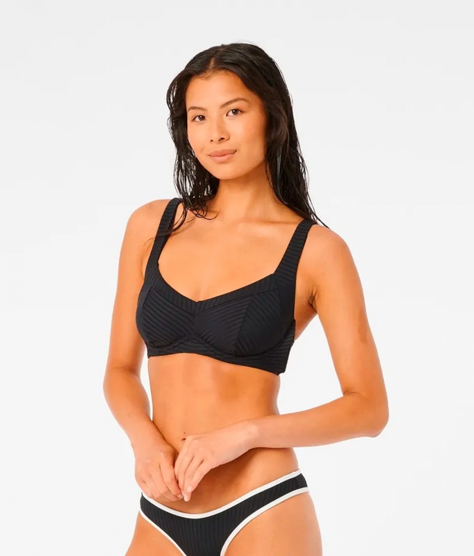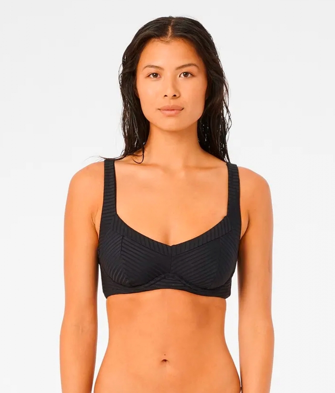 The Premium Surf E-Bralette Bikini Top from Rip Curl features a wide, flat ribbed style with full support and adjustable straps. Whether you wear it surfing or lounging by the pool, this top is flattering, without any worries of slipping!