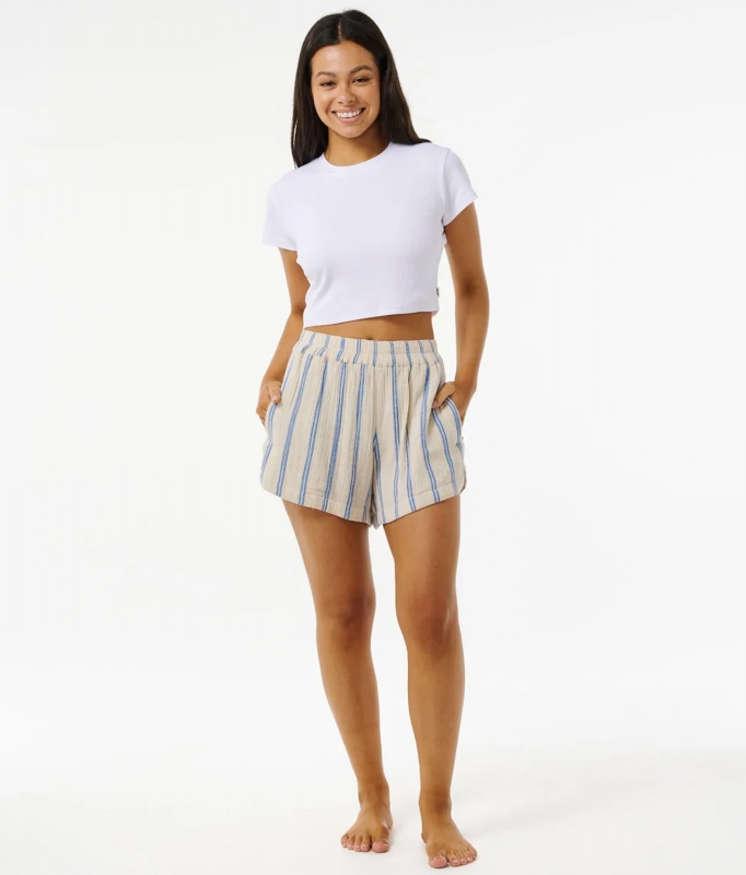 The Premium Surf Stripe Short from Rip Curl are the perfect beachy lounge shorts, featuring a cute striped pattern, an elastic waist, and pockets.