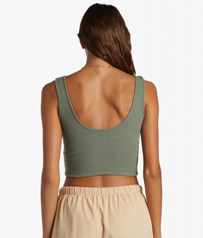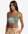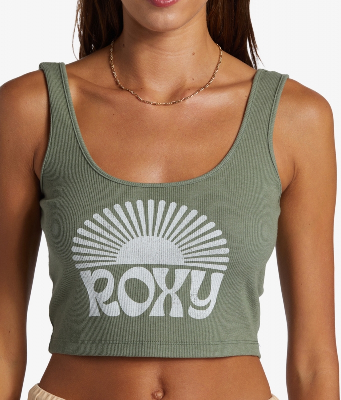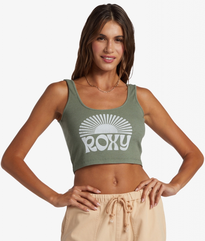The Rise And Shine Dive In Tank from Roxy is a cropped ribbed cotton tank featuring a sunshine Roxy logo.